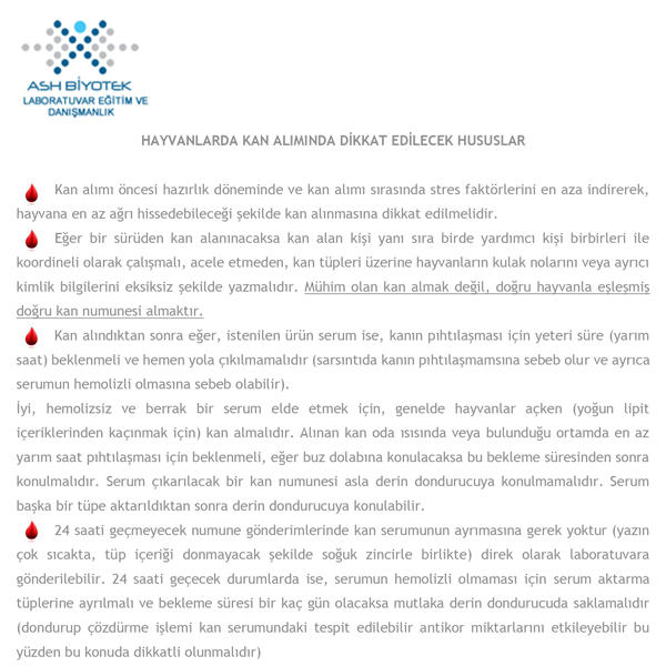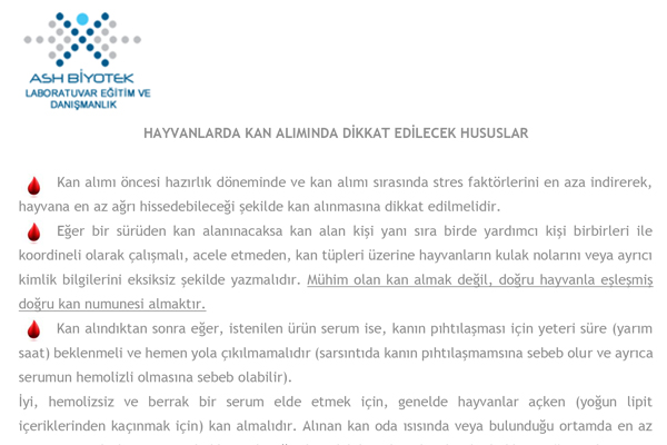 Talep Formunu, Hayvanlarda Kan Alımında Dikkat Edilecek Hususlar