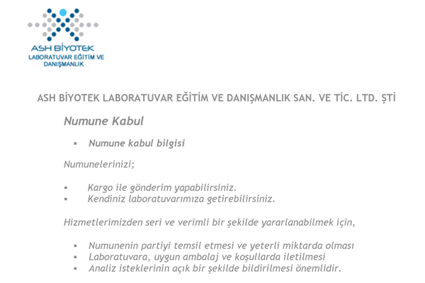 ASH BİYOTEK LABORATUVAR EĞİTİM VE DANIŞMANLIK SAN. VE TİC. LTD. ŞTİ.