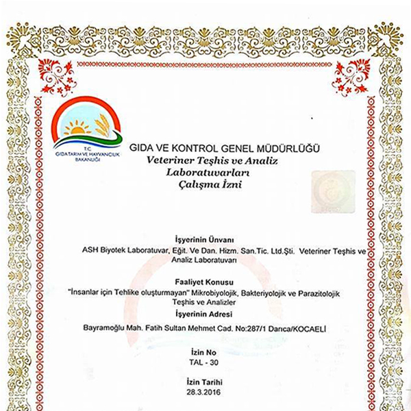 ÖZEL ASH BİYOTEK LABORATUVARI, 28 Mart 2016 tarihinden itibaren,